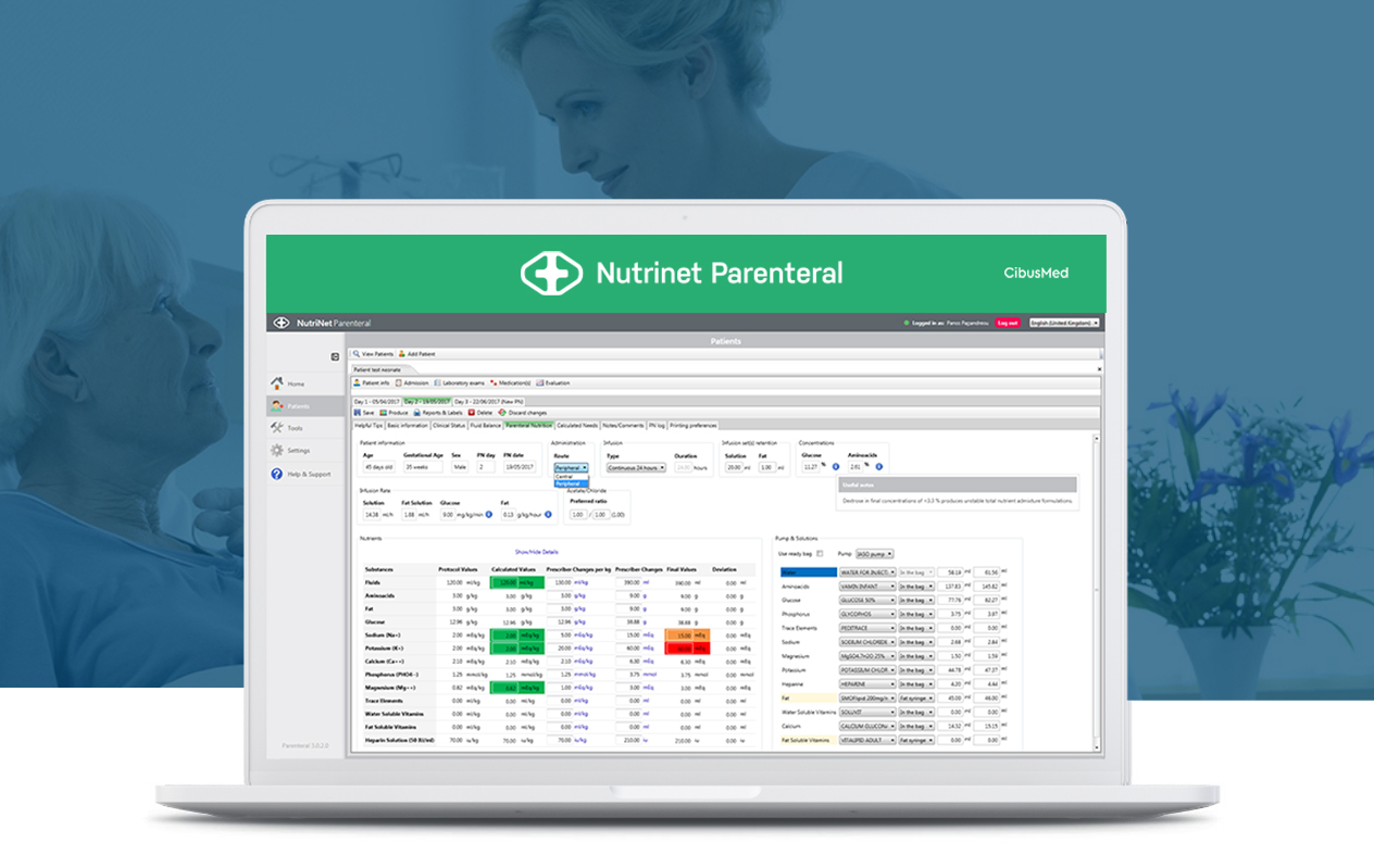 Nutrinet Parenteral is a medical software solution designed to support healthcare professionals in managing Parenteral Nutrition (PN) from prescription to production.